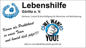 Sprechen Sie uns an und bewerben Sie sich bei uns unter: bewerbung@lebenshilfe-goerlitz.de